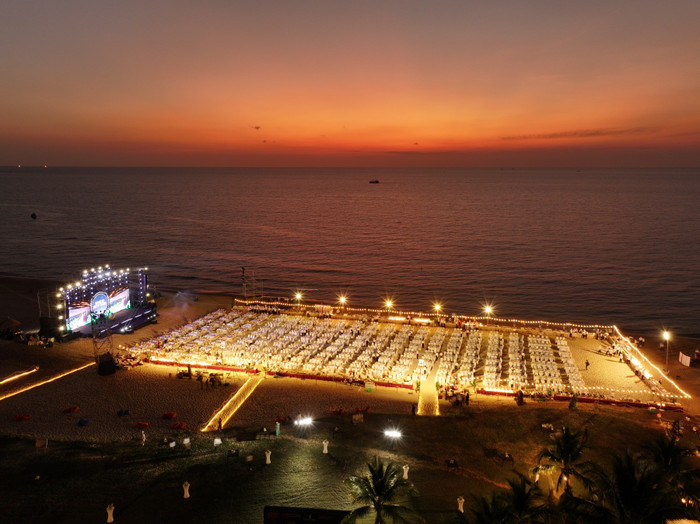 Tại Vinpearl Wonderworld Phú Quốc, 2.000 vị khách đặc biệt đã có hành trình countdown đỉnh cao dưới ánh hoàng hôn ngũ sắc trứ danh và thưởng thức dạ tiệc buffet đón năm mới trên bãi biển - Wake Up New Year Countdown Party. Đại tiệc được thiết kế chỉn chu và tinh tế trong gian khoáng đạt và rì rào tiếng sóng vỗ của bãi biển riêng tư, mang đến trải nghiệm đón năm mới theo phong cách vừa “chill”, vừa rộn ràng nhưng vẫn đẳng cấp, mãn nhãn.
