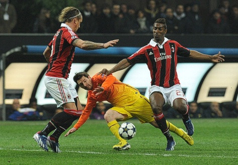 Để chặn Messi, hàng phòng ngự Milan lùi về sâu nhưng dàn hàng rất dày ở khu vực ngoài vòng cấm trong khoảng cự ly 30m, và Ambrosini án ngữ ở trước khu 16m50. Messi trong 2 lần dứt điểm ở các phút 10 và 63 đều có vị trí dứt điểm là ngoài vòng cấm. Ở cú sút thứ nhất, anh bị Zapata block được, còn ở cú sút thứ 2 là một quả đá phạt trực tiếp đi lên khán đài.