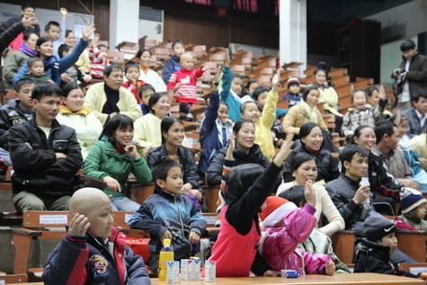 Mặc dù chưa đến giờ biểu diễn, nhưng các “bệnh nhân nhí” hí hửng bảo bác sỹ khám, tiêm nhanh để xuống hội trường J xem các cô chú trình diễn múa rối. Bệnh viên Nhi Trung ương hôm nay trở nên ấm áp, nhộn nhịp hơn khi thu hút đông đảo các bậc phụ huynh, các bé tò mò, thích thú đến xem.