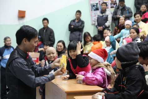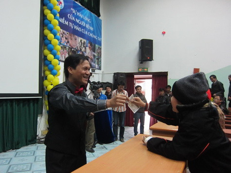 Ngoài những món quà tinh thần của nghệ sỹ dành cho các em, nhiều cá nhân trong đoàn biểu diễn còn ủng hộ hơn 3 triệu đồng trao cho người phụ trách lớp học để hỗ trợ việc học cho các em lớp học Hy vọng.