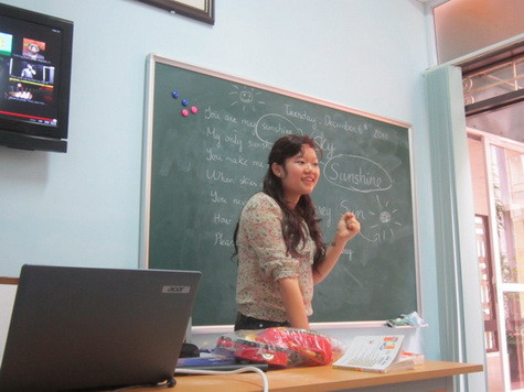 | Cô giáo 9x dễ thương này luôn muốn mang đến cho các em nụ cười, niềm vui bằng những bài hát tiếng Anh ngộ nghĩnh, sinh động hoặc các trò chơi thoải mái, nhẹ nhàng. |
