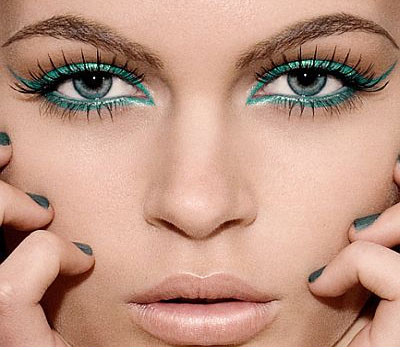 Màu mắt xanh như cây thông Noel là cách cực dễ để bạn hòa mình vào không khí Giáng Sinh. Với các teengirl, để tránh việc bị già vì trang điểm quá đậm, chúng mình có thể thử chì kẻ mắt màu xanh có nhũ.