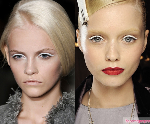 Cách này cần tới chì kẻ mắt màu trắng, phấn mắt ngọc trai và có thể nhấn môi màu nổi để tạo sự trẻ trung.