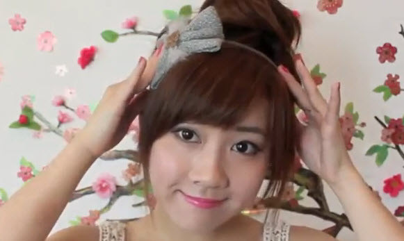 Sử dụng chiếc bờm xinh xắn để trang trí thêm cho kiểu tóc đáng yêu này.
