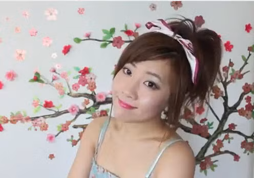 Dùng khăn mùi soa để thắt nơ cho kiểu tóc này.