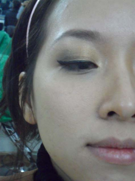 Dùng cọ mắt nước lấy một lượng vừa đủ (không quá nhiều vì dễ bị lem và không quá ít sẽ làm đường vẽ đứt quãng, không đều). Bắt đầu vẽ từ 1/2 bầu mắt trở ra phía đuôi mắt, chú ý nghiêng bút và nhanh tay để tạo độ sắc cho phần đuôi. Tiếp tục vẽ từ đầu mắt đến điểm 1/2 của bầu mắt và kéo dần về phía đuôi mắt.
