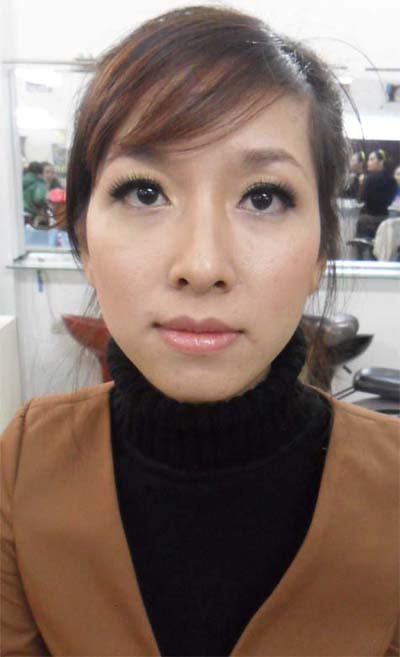 Sau khi xong bước trang điểm mắt, bạn tiếp tục đánh má hồng và son môi và hoàn tất việc trang điểm. Để đôi mắt trở thành "tâm điểm", bạn nên sử dụng loại son có độ bóng và màu nhẹ nhàng như cam, hồng sen, nuy...