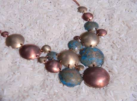 | Nhìn qua ta cứ tưởng sự kết hợp này thật lộn xộn nhưng thực ra với sự khéo léo của nhà thiết kế đã tạo nên vẻ hài hòa cho chiếc vòng cổ |