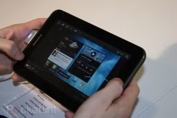 | Màn hình của Galaxy Tab 2 cũng không thể so sánh với màn hình HD Super AMOLED của các mẫu Galaxy Tab cao cấp. Galaxy Tab 2 có màn hình kích thước 7 inch, độ phân giải WSVGA (1024 x 600). Tuy nhiên, điểm tạo sự khác biệt cho sản phẩm trong rừng máy tính bảng Galaxy Tab là máy sẽ chạy HĐH Android mới nhất Ice Cream Sandwich ngay khi đến tay người dùng. HĐH này sẽ được tích hợp các widget cho phép người dùng truy cập các nội dung số của Samsung nhanh chóng, trong đó có cả Video Hub với khoảng 1000 đầu phim (để bán và cho thuê) của Samsung. |