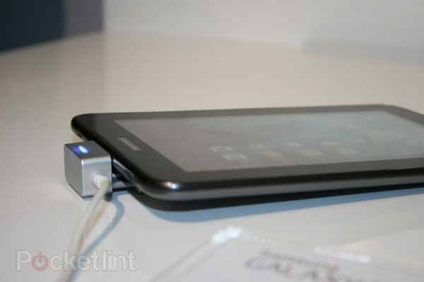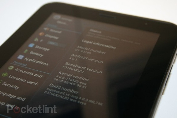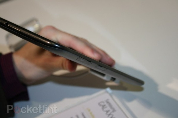 | Máy cho cảm giác thoải mái khi cầm nắm và mang lại những cảm nhận tương tự Galaxy Tab 10.1 hay 8.9 hơn là người tiền nhiệm Galaxy Tab thế hệ đầu tiên, với các cạnh được bo tròn và mặt lưng xám bóng. Màn hình của máy dù không phải là Super AMOLED nhưng vẫn hiển thị tốt trong điều kiện ánh sáng không thuận lợi. |