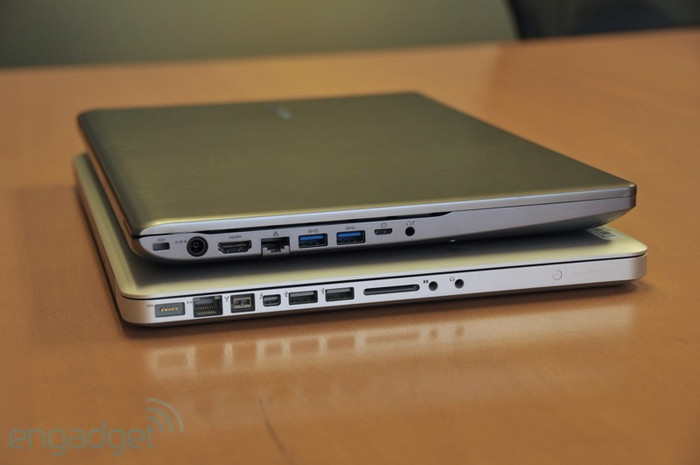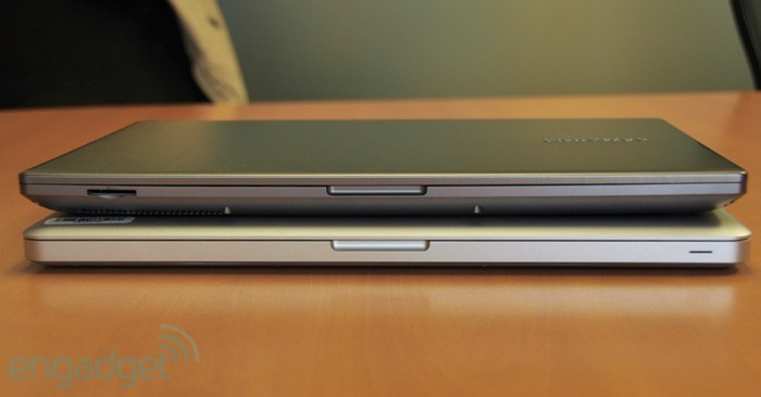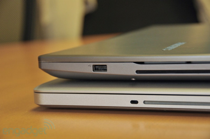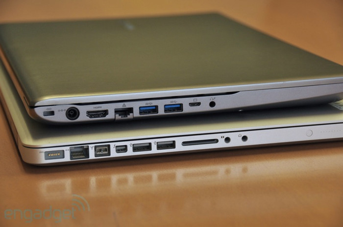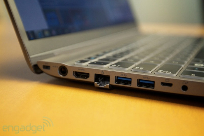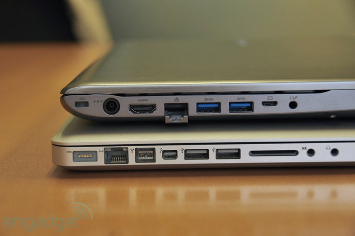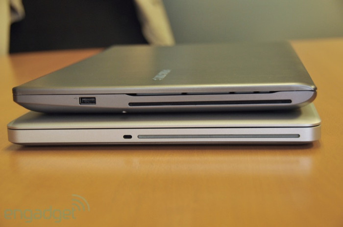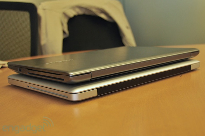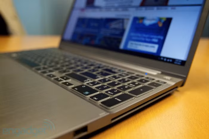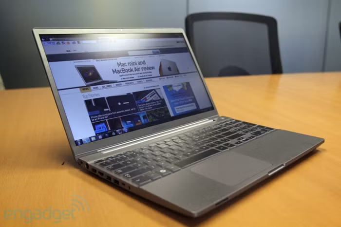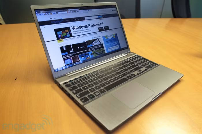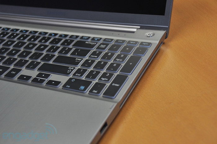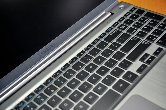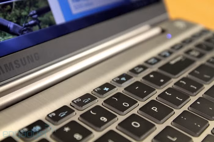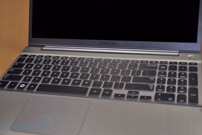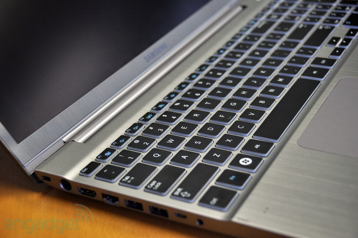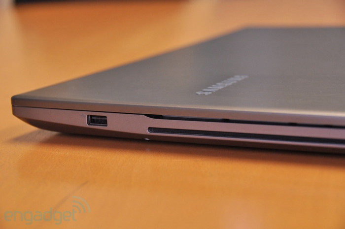 | Samsung cho biết dòng laptop này sẽ dùng ổ DVD dạng nuốt đĩa, có hai cổng USB 3.0, một cổng USB 2.0, Ethernet, HDMI, bàn phím có đèn nền. |