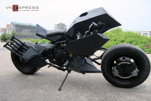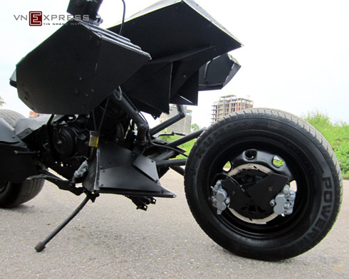 | "Siêu môtô Batman" có kết cấu khá dài, nhưng không có đèn pha. |