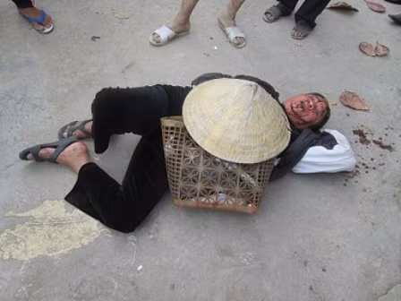 Do tuổi cao, bà Bình bị ngã ra đường, máu me đầy mặt. Sau khi đánh dã man cụ già này xong, Hoàng Thế Anh đã thản nhiên lên xe phóng đi.