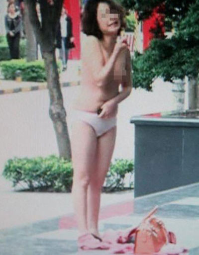 Theo các nhân viên của toà nhà – nơi anh chàng người yêu đang làm việc, lúc đầu cô gái này ăn vận đàng hoàng, bước vào toà nhà nhưng trong tâm trạng không bình thường, khóc lóc rất nhiều nên đã được yêu cầu đi ra ngoài. Không ngờ vài chục phút sau, cô gái đứng ngay trước cổng công ty, dần trút bỏ quần áo, đe doạ bạn trai phải ra gặp mặt để giải quyết chuyện tình cảm và nợ nần.