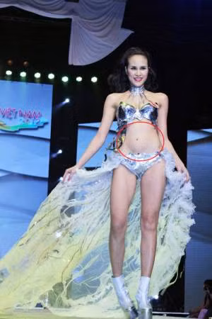 Những nhược điểm cơ thể như bụng không được săn, chân không được thon của Phương Mai đều bị vạch trần khi mặc bikini