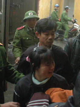 | Hoài cười tươi khi xuống xe tù. |