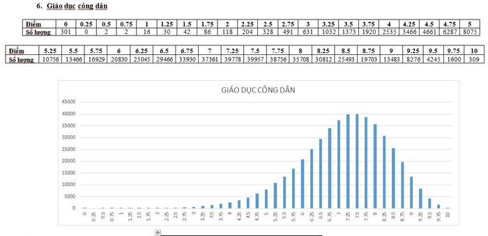 (GDVN) - Theo thống kê của Bộ Giáo dục và Đào tạo, môn Giáo dục Công dân có nhiều điểm 10 nhất với 309 thí sinh đạt điểm 10 môn này.