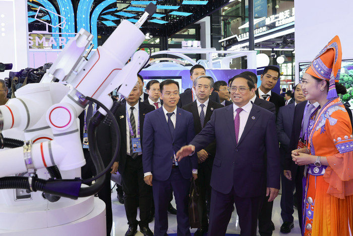 Sáng 17/9, sau khi dự và phát biểu tại Lễ khai mạc Hội chợ Trung Quốc - ASEAN (CAEXPO) và Hội nghị thượng đỉnh Thương mại - Đầu tư Trung Quốc - ASEAN (CABIS) lần thứ 20 tại thành phố Nam Ninh, tỉnh Quảng Tây, Trung Quốc, Thủ tướng Chính phủ Phạm Minh Chính dự khai trương khu gian hàng thương mại của Việt Nam tại Hội chợ.