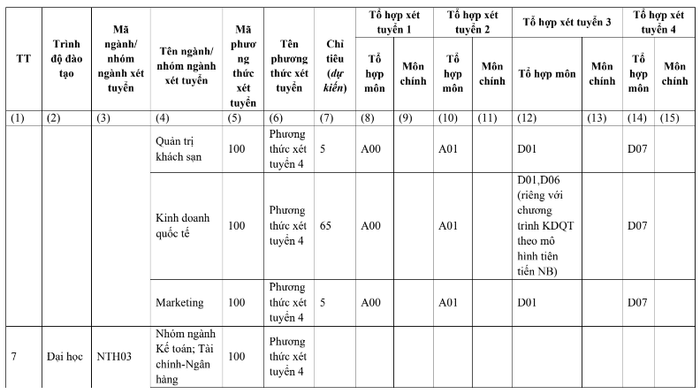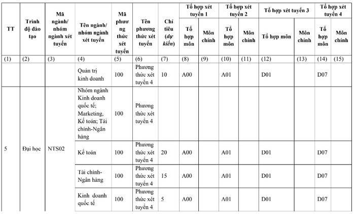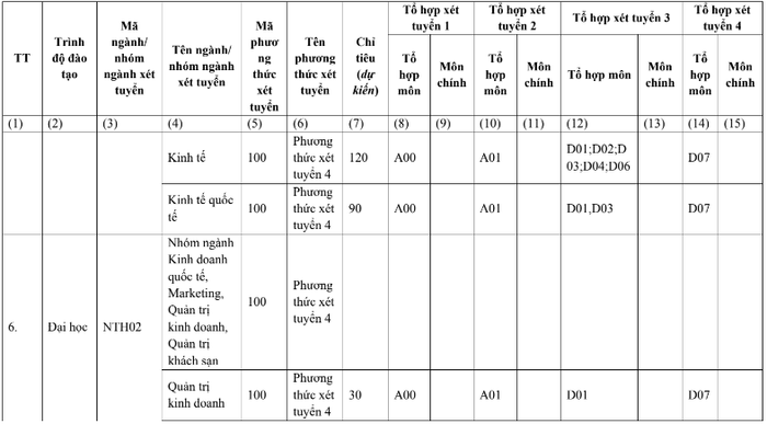 Phương thức 6 - Phương thức xét tuyển thẳng: Xét tuyển theo Quy chế tuyển sinh của Trường Đại học Ngoại thương.