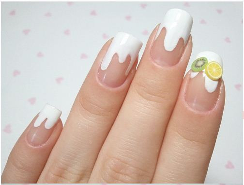 | Phủ sơn trắng lên phần móng phía trên để tạo nền cho kiểu nail |