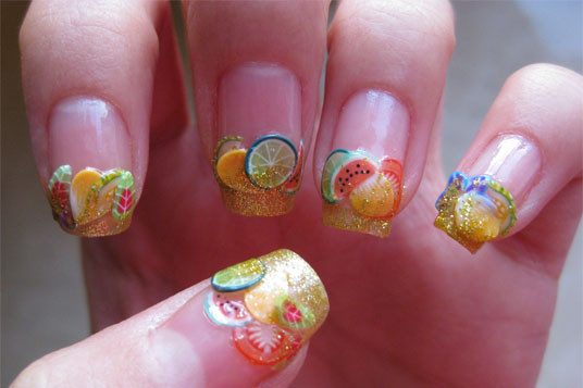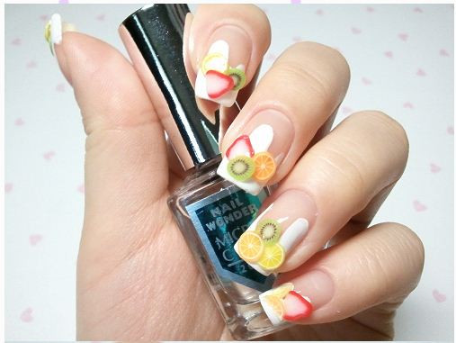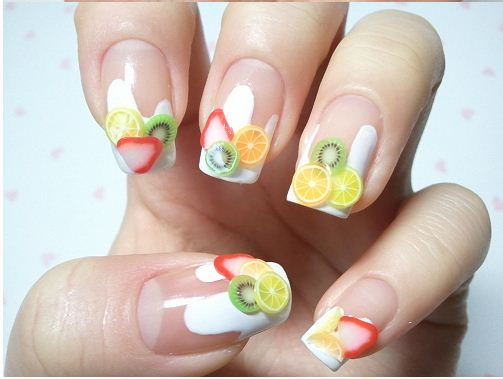 | Bước 2: chọn những họa tiết hình hoa quả, bạn có thể mua ở các của hàng chuyên dụng dành cho móng tay |