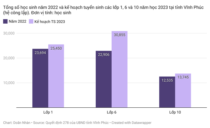 Mặc dù có quy mô học sinh lớn nhất so với các bậc học, tuy nhiên số lượng học sinh tiểu học dự kiến tuyển sinh năm nay so với năm 2022 giảm khoảng gần 3.500 em. Theo kế hoạch của Ủy ban nhân dân tỉnh Vĩnh Phúc, quy mô học sinh ở bậc trung học cơ sở tăng nhiều nhất - khoảng gần 11.000 em (so với năm 2022).