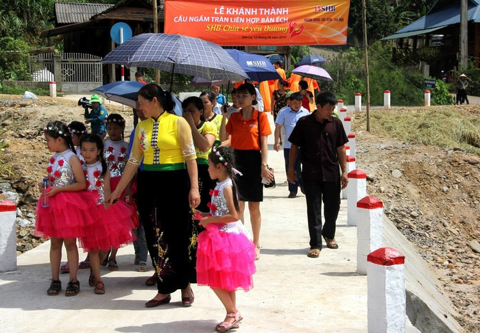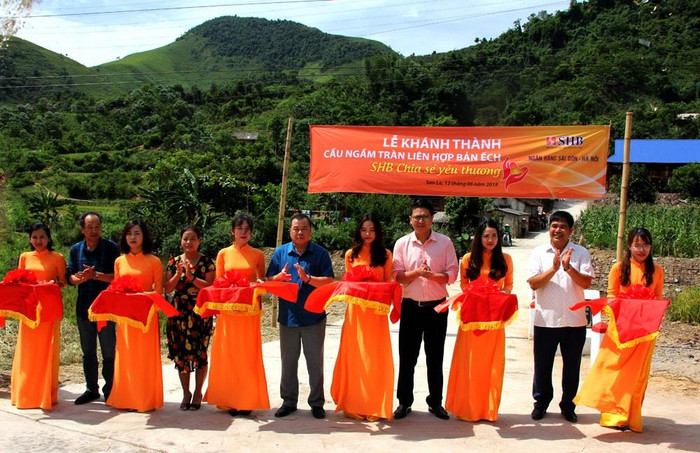 Với mong muốn giúp bà con tại bản Ếch, xã Mường Cơi, huyện Phù Yên, tỉnh Sơn La đi lại an toàn và thuận tiện hơn, sau hơn ba tháng gấp rút xây dựng và hoàn thiện, công trình Cầu ngầm tràn liên hợp Bản Ếch do Ngân hàng Sài Gòn – Hà Nội (SHB) tài trợ toàn bộ kinh phí đã chính thức khánh thành.