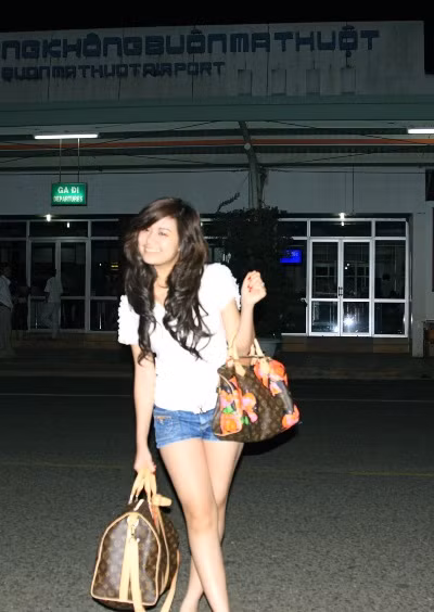 | Ca sĩ Hoàng Thùy Linh chụp ảnh tại sân bay Ban Mê Thuột khi cô đến đây chuẩn bị cho chương trình Thế giới Vpop vào tháng 6/2009. |