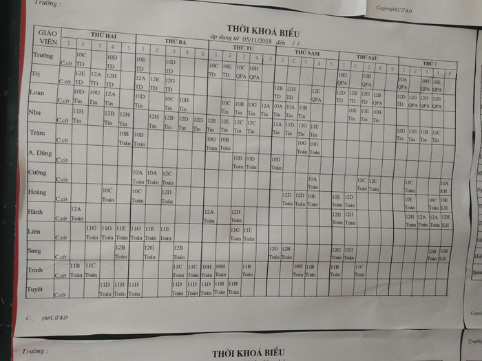 Cô Thân Thị Hà Trinh được phân giảng dạy 4 lớp với 11 tiết/ tuần của các lớp 10H, 11B, 11C; còn cô Nguyễn Ngọc Trâm ngoài Phó Bí thư đoàn trường giảng dạy 6 tiết/ tuần cho 2 lớp 10B, 10G.