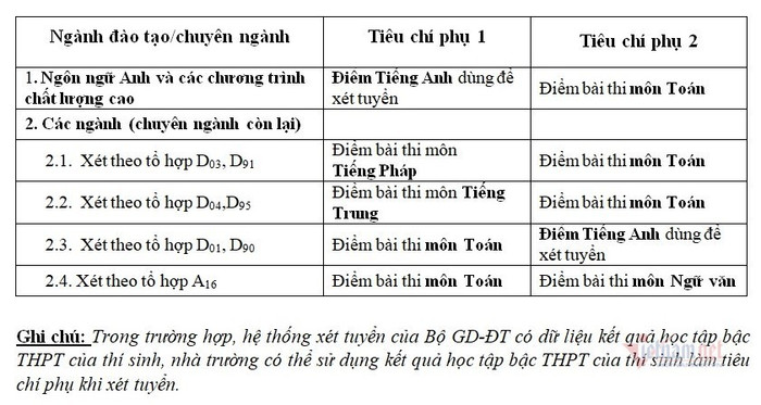 Nguyên tắc xét tuyển theo tiêu chí phụ: Sau khi sử dụng tiêu chí phụ 1, nếu số thí sinh trúng tuyển vẫn còn cao hơn so với chỉ tiêu, trường sử dụng tiêu chí phụ 2.