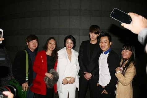 Người đẹp Việt chia sẻ thêm những bức ảnh ghi lại khoảnh khắc đoàn Việt Nam gặp gỡ sao The Heirs, đặc biệt có tấm hình Kim Woo Bin với nụ cười nhếch mép đặc trưng của anh. Những hình ảnh hậu trường mà người đẹp gửi về cũng cho thấy nhiều "kiểu đứng" khác của mỹ nam xứ Hàn: