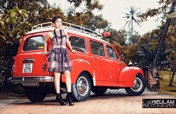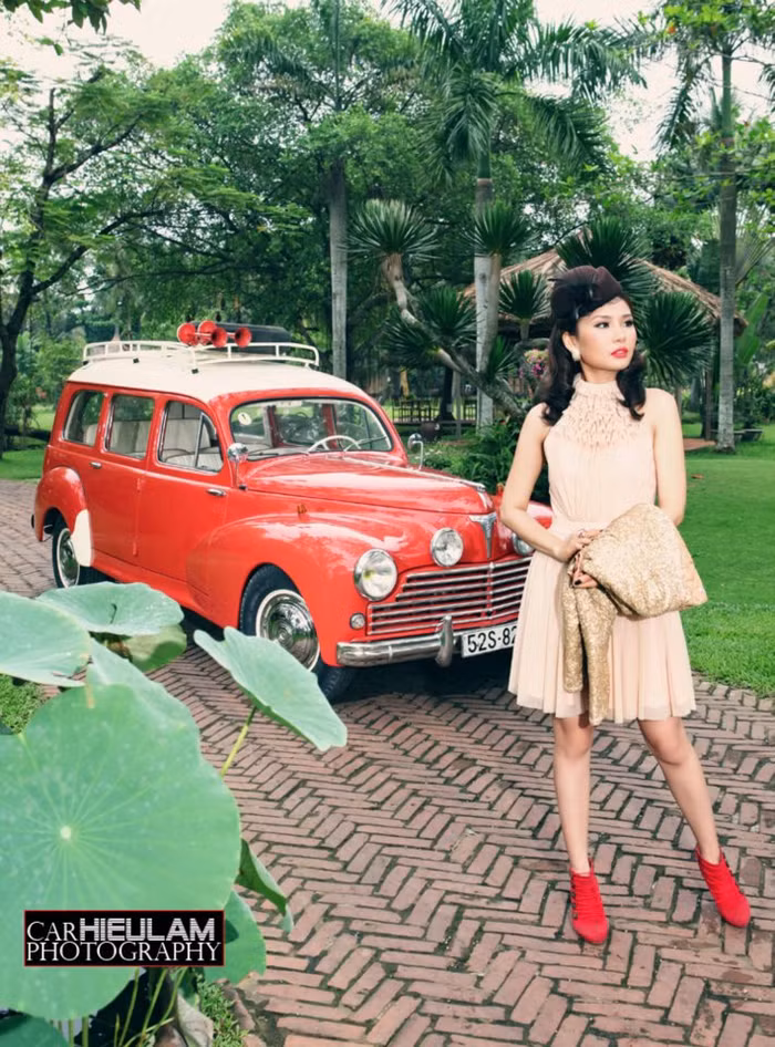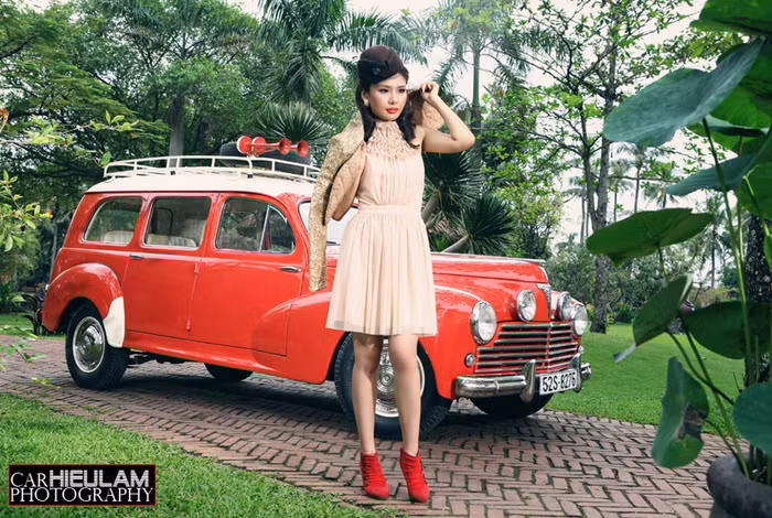 (GDVN) - Với dụng ý thể hiện sự hoài cổ bên chiếc Peugeot 203 Familiale, siêu mẫu Hoàng Kha với lối trang điểm đậm lấy màu đỏ làm tông màu nổi bật trông cô toát lên một nét quyến rũ vừa cổ điển nhưng cũng vô cùng hiện đại.