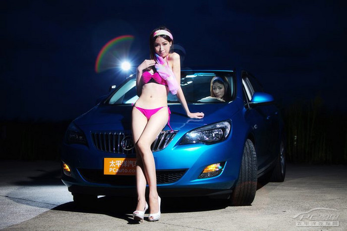 (GDVN) - Cặp người mẫu song sinh khoe đôi chân dài và những đường cong quyến rũ bên chiếc siêu xe Buick màu xanh tươi trẻ.