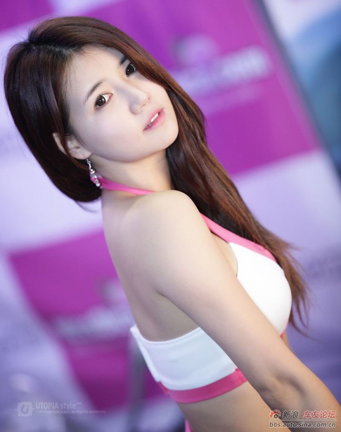 (GDVN) - Người mẫu xe Hàn Quốc trông trẻ trung và đáng yêu với trang phục gợi cảm và sắc mồi hồng rạng ngời. Điều đặc biệt có thể nhận thấy dễ dàng là người đẹp Hàn Quốc trông rất giống với Ngọc Trinh, họ cùng sở hữu vẻ đẹp đằm thắm cùng làn da trắng ngần.