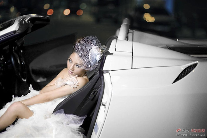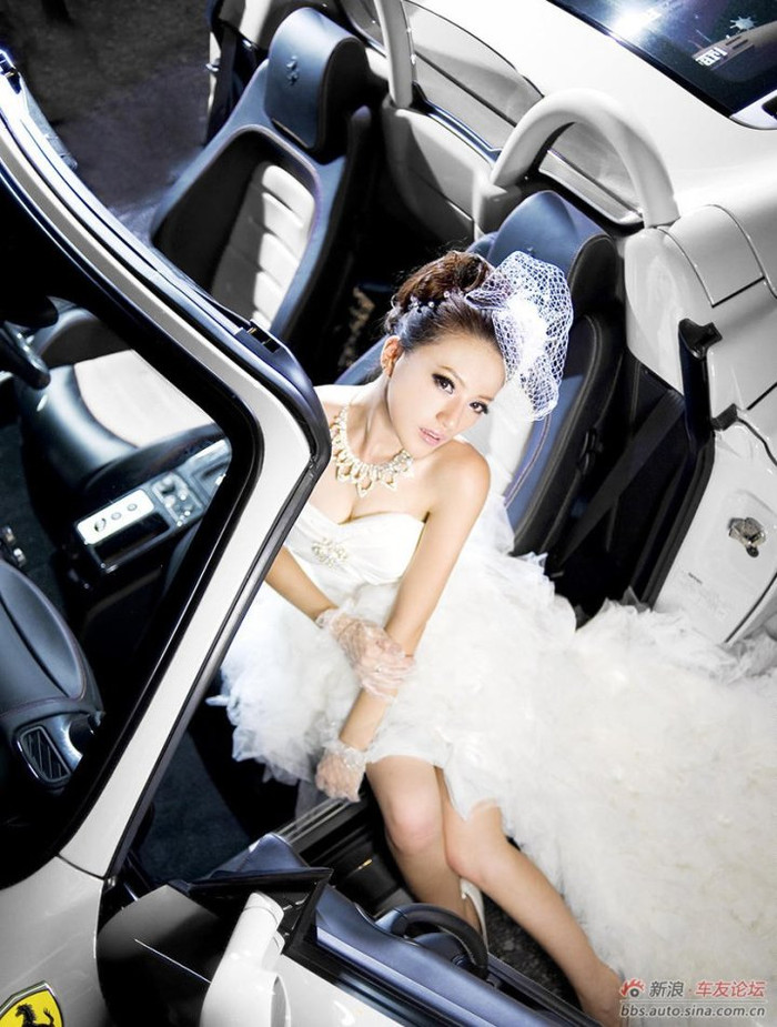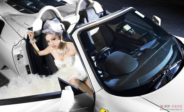 Cô dâu xinh đẹp cưỡi Ferrari mui trần