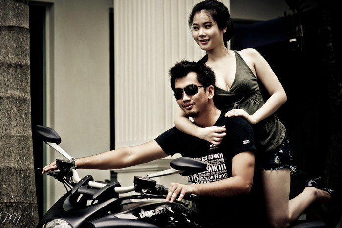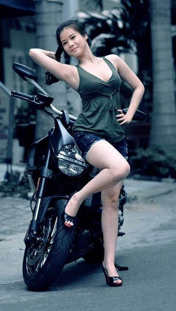 | Bên cạnh chiếc xe đẹp là Model chân dài với gương mặt biểu cảm diễn đạt rất ăn ý cùng chiếc xe |
