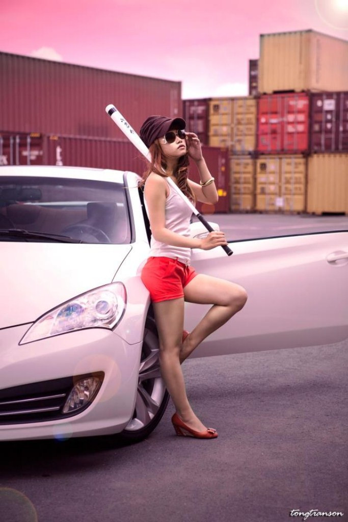 | Chiếc xe màu trắng sang trọng cùng người đẹp nổi bật làm các đấng mày râu phải "ngỡ ngàng" |