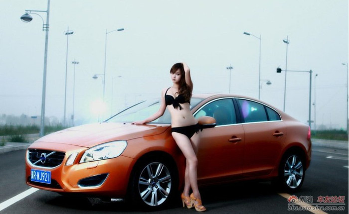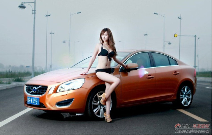(GDVN) - Chiếc siêu xe Volvo màu cam làm nền cho người đẹp khoe đường cong nóng bỏng và cuốn hút trong trang phục nội y màu đen.