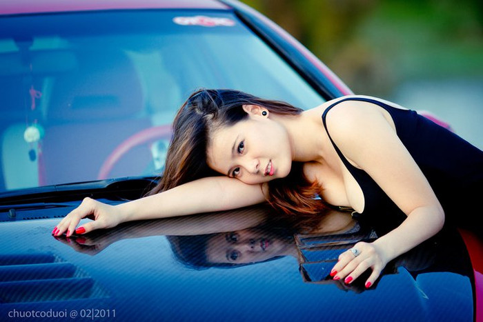| Dường như khi trình diễn cùng chiếc xe đắt giá này người đẹp khá tự tin và chinh phục được con mắt của không chỉ phái mạnh |