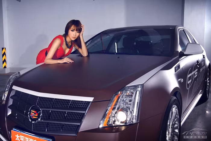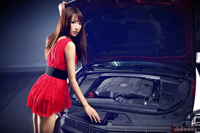 (GDVN) - Chiếc Cadillac màu sô-cô-la được tôn vẻ sang trọng và kiêu sa khi được lựa chọn làm nền cho kiều nữ diện váy ngắn màu đỏ gợi cảm.