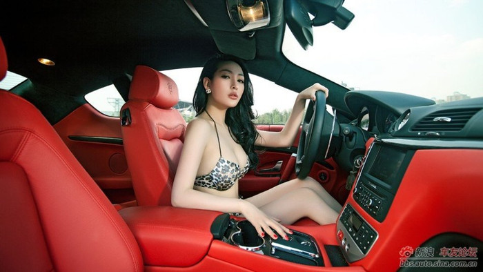 (GDVN) - Người đẹp tạo dáng nóng bỏng trong nhiều trang phục khác nhau bên siêu xe Maserati với nội thất màu đỏ sang trọng và lộng lẫy.