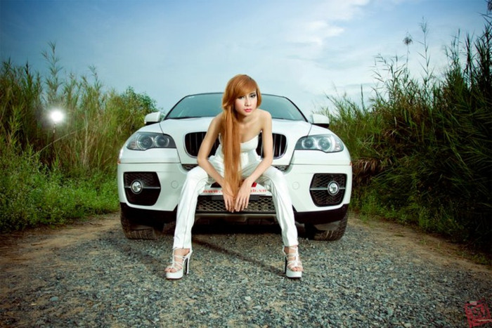 (GDVN) - Người đẹp chân dài Thái Tuyết Trâm khoe chân dài cá tính bên chiếc xe BMW X6 trắng sang trọng, người đẹp cực cuốn hút với mái tóc vàng bay trong gió và bộ đồ cá tính.