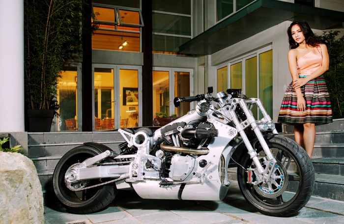 (GDVN) - P120 Fighter là dòng moto khủng mà không phải ai có tiền cũng mua được. Số lượng sản xuất có hạn cùng với thiết kế tinh xảo của nó khiến nhiều tín đồ mê xe phải mơ ước. Siêu xe càng cuốn hút hơn khi đứng kế bên chân dài Thúy Nga.