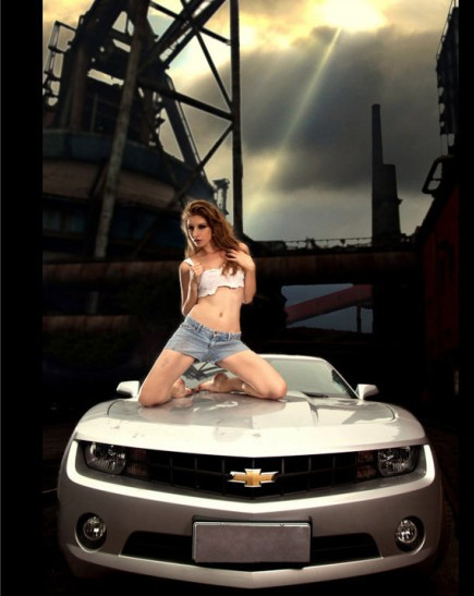 (GDVN) - Người đẹp trông vô cùng gợi cảm và nóng bỏng với trang phục quần soóc jean và áo màu trắng, bên cạnh siêu xe Chevrolet Camaro mạnh mẽ và cá tính.