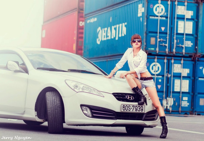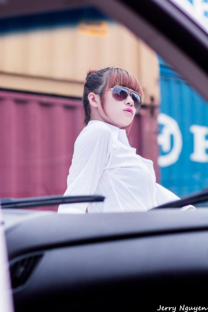 | Dường như trước vẻ đẹp cá tính của nàng chiếc xe sang trọng phải chùn bước, làm nền cho cô nàng tỏa sáng |