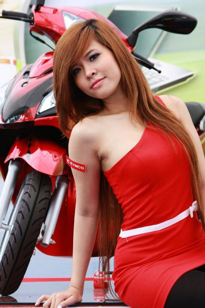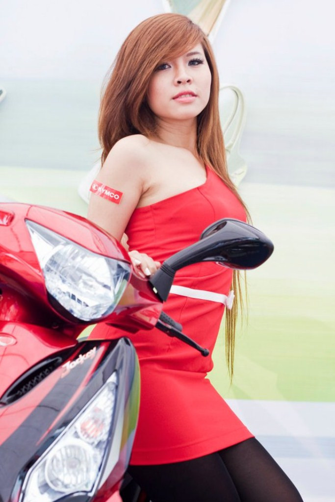 | Cùng đọ dáng với chiếc xe đẹp là cô nàng cá tính nòng bỏng với tông màu đỏ làm chủ đạo |