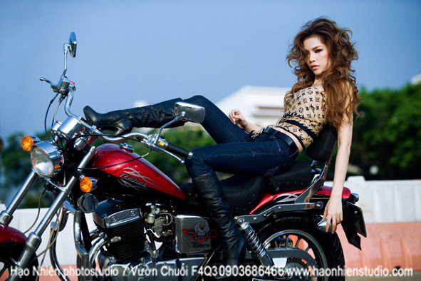 (GDVN) - Bên cạnh chiếc Rebel USA, ca sĩ Quách An An tự tin khoe đôi chân thon dài và một thân hình nẩy lửa. Dù không sexy nhưng người đẹp vẫn khiến phái mày râu phải lác mắt bởi vẻ đẹp kiêu sa và mạnh mẽ.