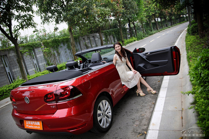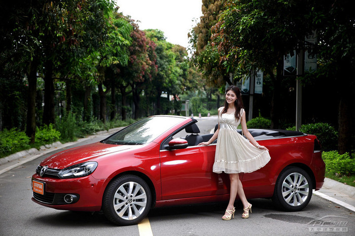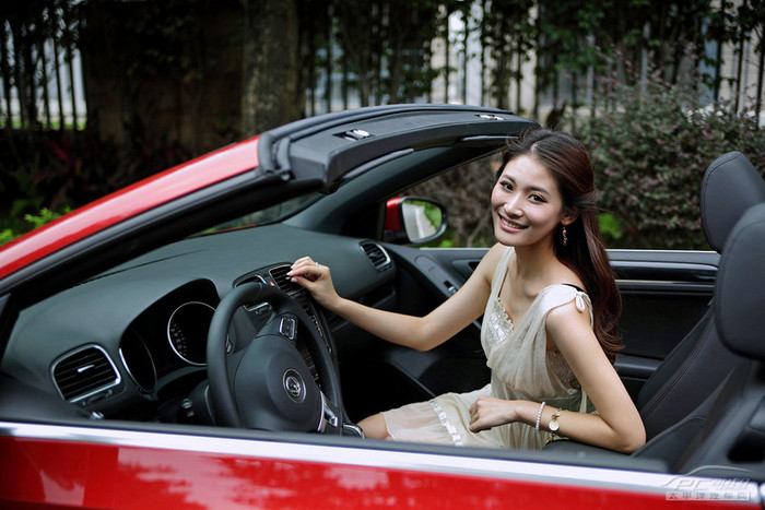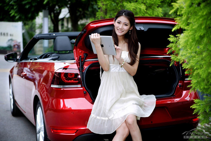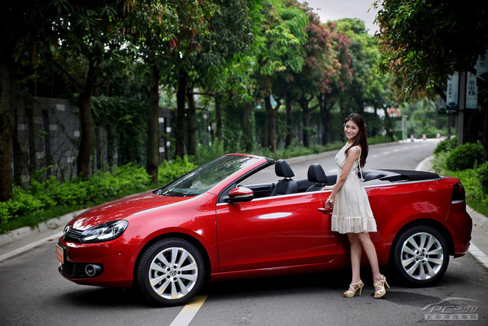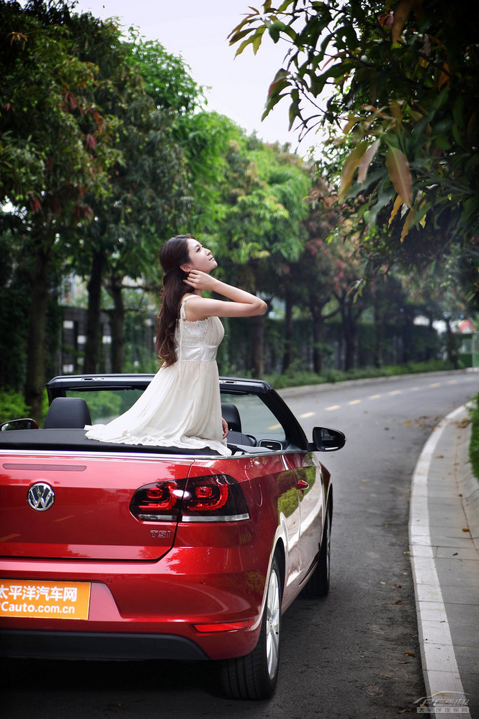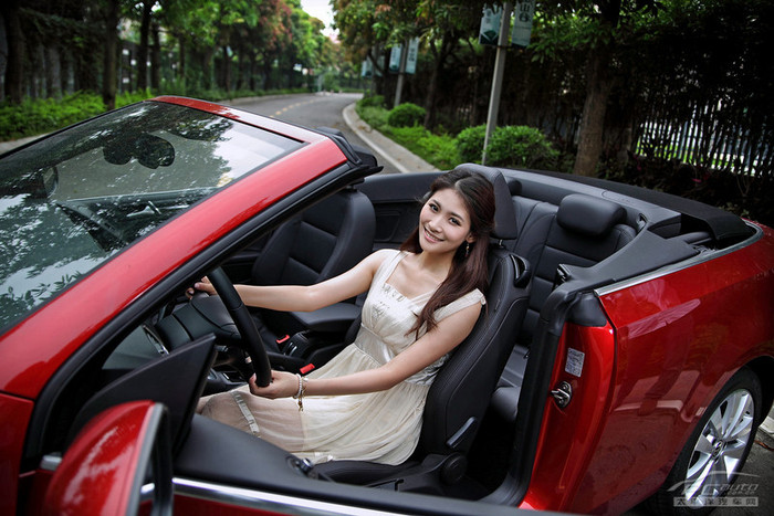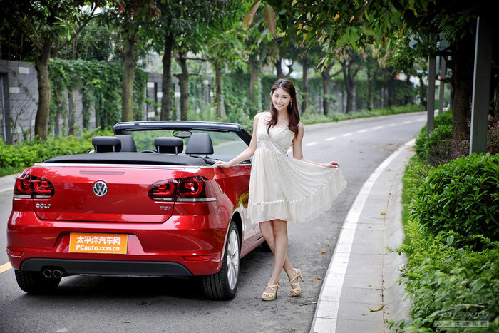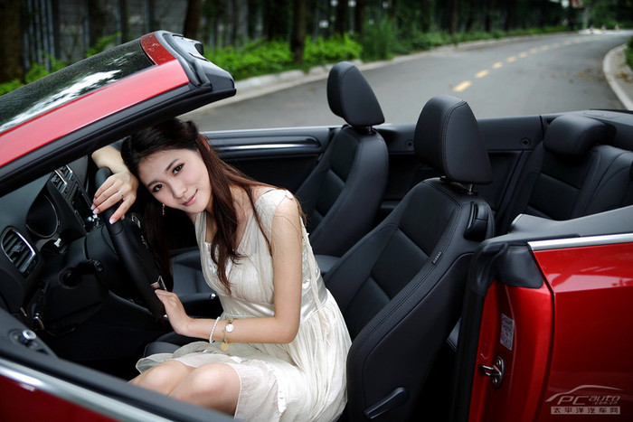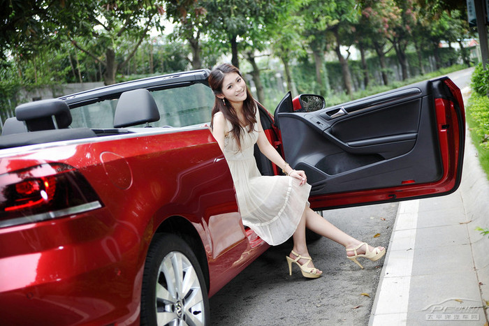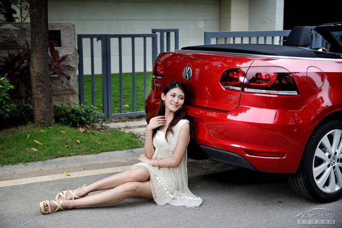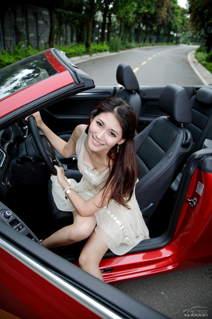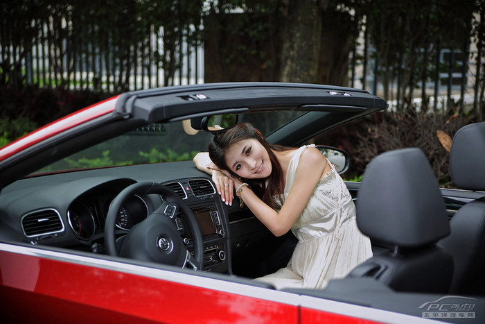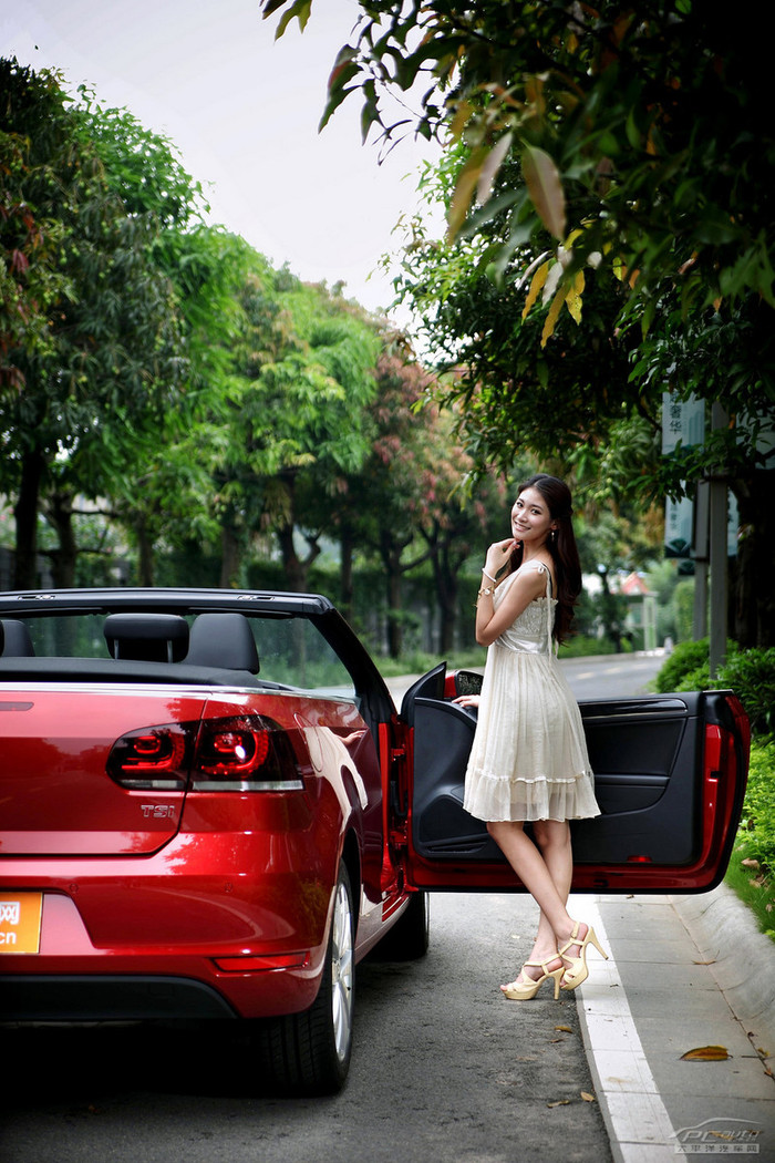 (GDVN) - Kiều nữ xinh tương và duyên dáng trong chiếc váy màu trắng khoe dáng bên cạnh siêu xe Volkswagen mui trần màu đỏ nổi bật và sang trọng.