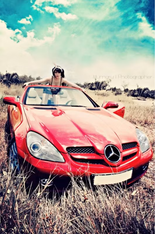 | Còn đây là chiếc xe Mercedes SLK 280 mui trần màu đỏ được coi là dòng xe tuyệt vời và ấn tượng mang dấu ấn Mercedes. |