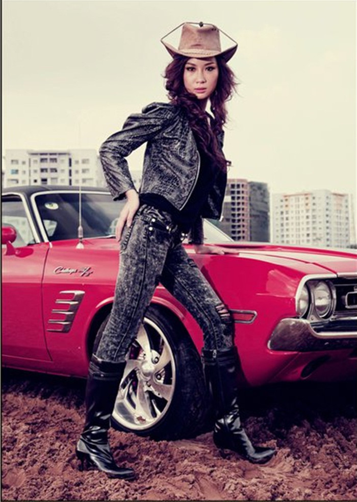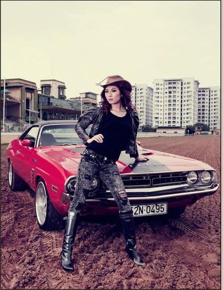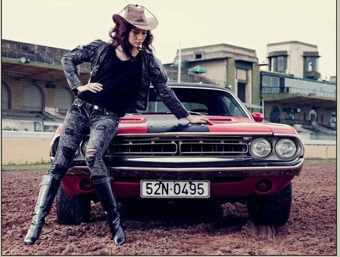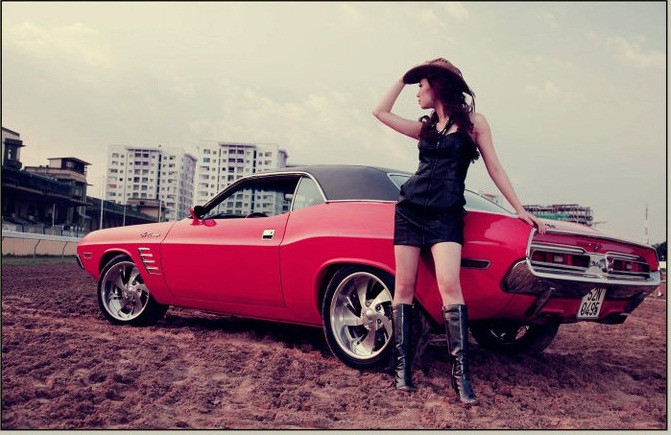 (GDVN) - Bên cạnh chiếc xế cổ Dodge Challenger 1971, người đẹp Thùy Linh say sưa tạo dáng. Vẻ đẹp hiện đại của Thùy Linh tôn nền cho chiếc xe có tuổi đời ngoài 40.